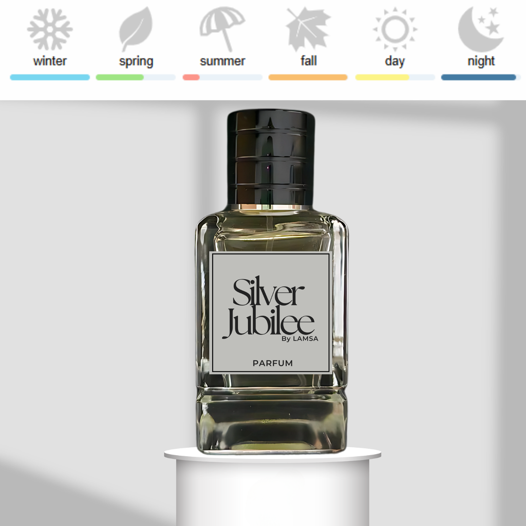 Celebrate a legacy of timeless elegance with Silver Jubilee, a fragrance inspired by the opulent Jubilation XXV Man by Amouage. Created by the renowned perfumer Bertrand Duchaufour, this oriental fougere scent embodies a sense of regal splendor and sophisticated masculinity. Like its inspiration, Silver Jubilee opens with a rich and complex blend of blackberry, olibanum, orange, labdanum, coriander, and tarragon. A heart of honeyed sweetness, smoky guaiac wood, warm spices like cinnamon, bay leaf, and clove, combined with the floral elegance of rose and orchid and a touch of unique celery seeds, creates a captivating tapestry of scents. The deep and luxurious base of opoponax, precious agarwood (oud), myrrh, patchouli, cedar, ambergris, immortelle, musk, and oakmoss adds a touch of enduring richness and unforgettable allure. Experience the majestic splendor of Jubilation XXV Man reimagined in Silver Jubilee.